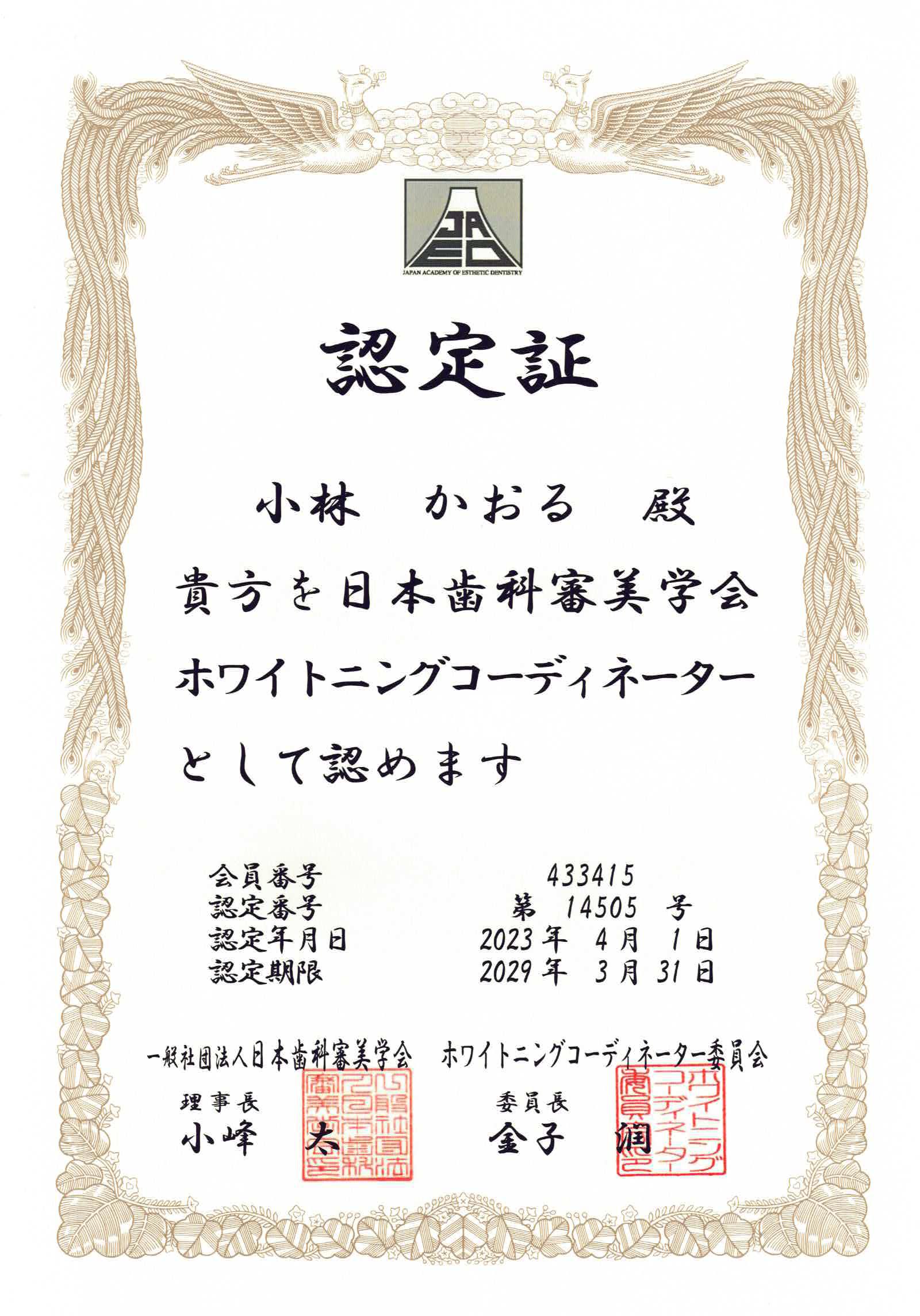 | 講習会参加歴 | オーラルケア PMTCクリニカルコース、EMS SDAセミナー |