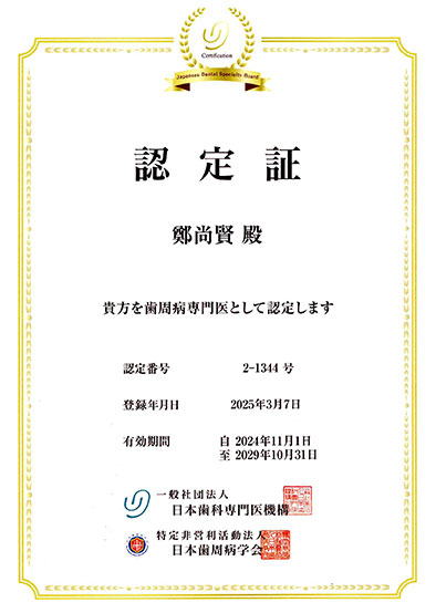 | 専門診療科目 | 歯周病、インプラント、審美セラミック治療(白い詰め物・被せ物) |